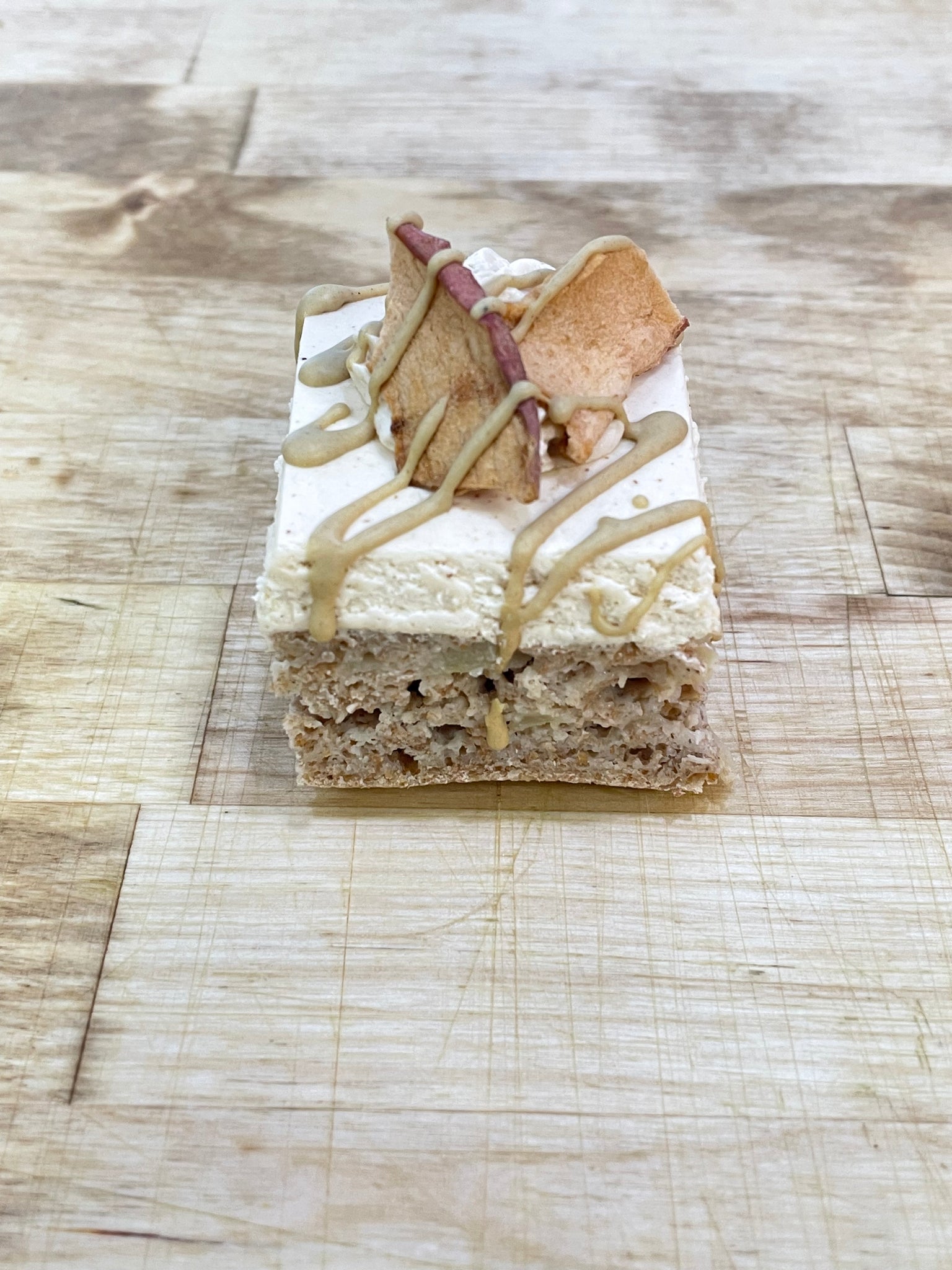 Whole wheat flour, applesauce, egg, buttermilk, veg. fat, peanut flour, honey, beet, turmeric, spirulina, spinach.
