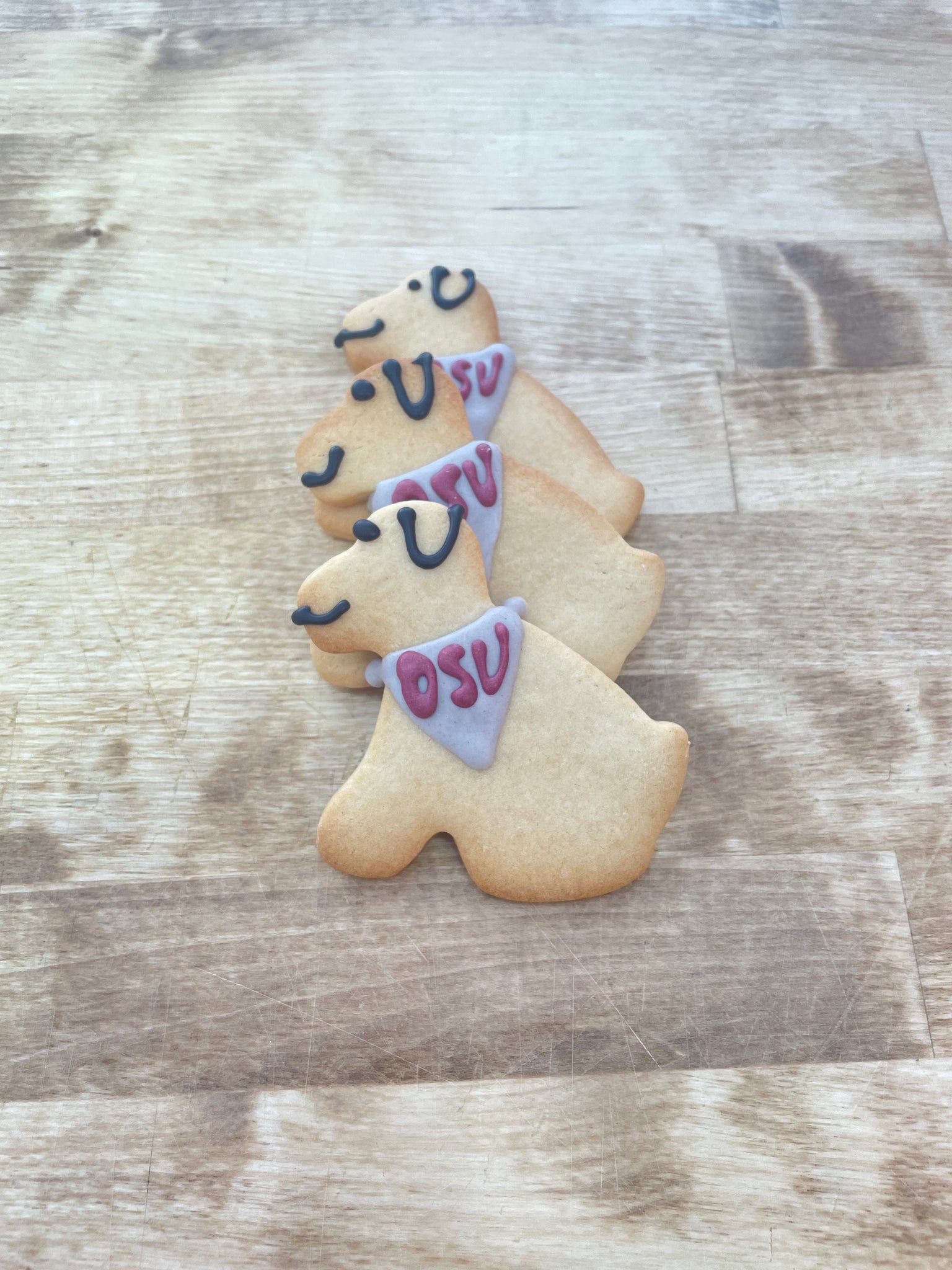 Ingredients: wheat flour, veg fat, honey. White icing with spirulina, turmeric and beet, carob.